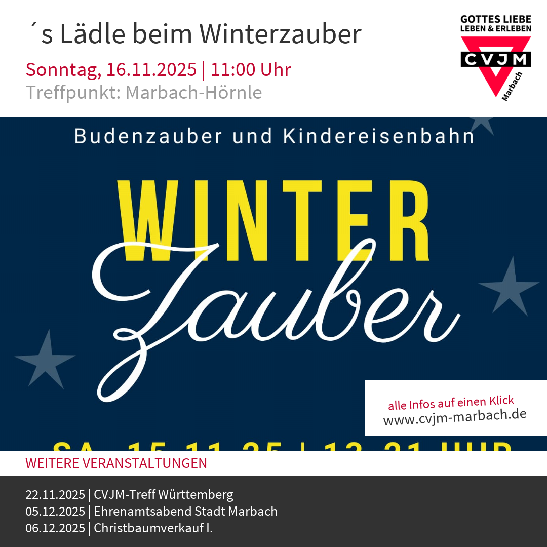 ´s Lädle beim Winterzauber am Sonntag, den 16.11.2025 um 11:00 Uhr. Die Veranstaltung findet hier statt: Marbach-Hörnle.
