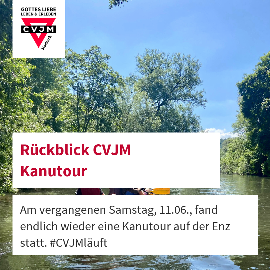 Bei sonnigem Wetter und mit vier besetzten Kanus starteten Jugendliche und junge Erwachsene des CVJM Marbach am vergangenen Samstag ihre Tour auf der Enz. Die Tour startete in Mühlacker, führte vorbei an teils weit in die Enz hereinragende Uferböschungen und an einer Schwanenmutter mit ihren Jungen. Die Paddler erlebten so die Natur der acht Kilometer langen Strecke von einer ganz anderen und ungewohnten Perspektive. Auch der Umgang mit Stromschnellen war für die harmonische Gruppe kein Hindernis, sondern ein besonderes Erlebnis. Beim gemeinsamen Grillen am Ufer in Mühlhausen war Zeit, sich nach der knapp dreistündigen Betätigung auszuruhen. Die Kanutour ist Teil der Veranstaltungsreihe "CVJM in Aktion", die sich am 24.07. mit dem CVJM Erlebnistag fortsetzt. Außerdem findet vom 01.07. - 21.07. die Aktion STADTRADELN statt, bei der sich jeder und jede im Stadtgebiet Marbach beteiligen kann.