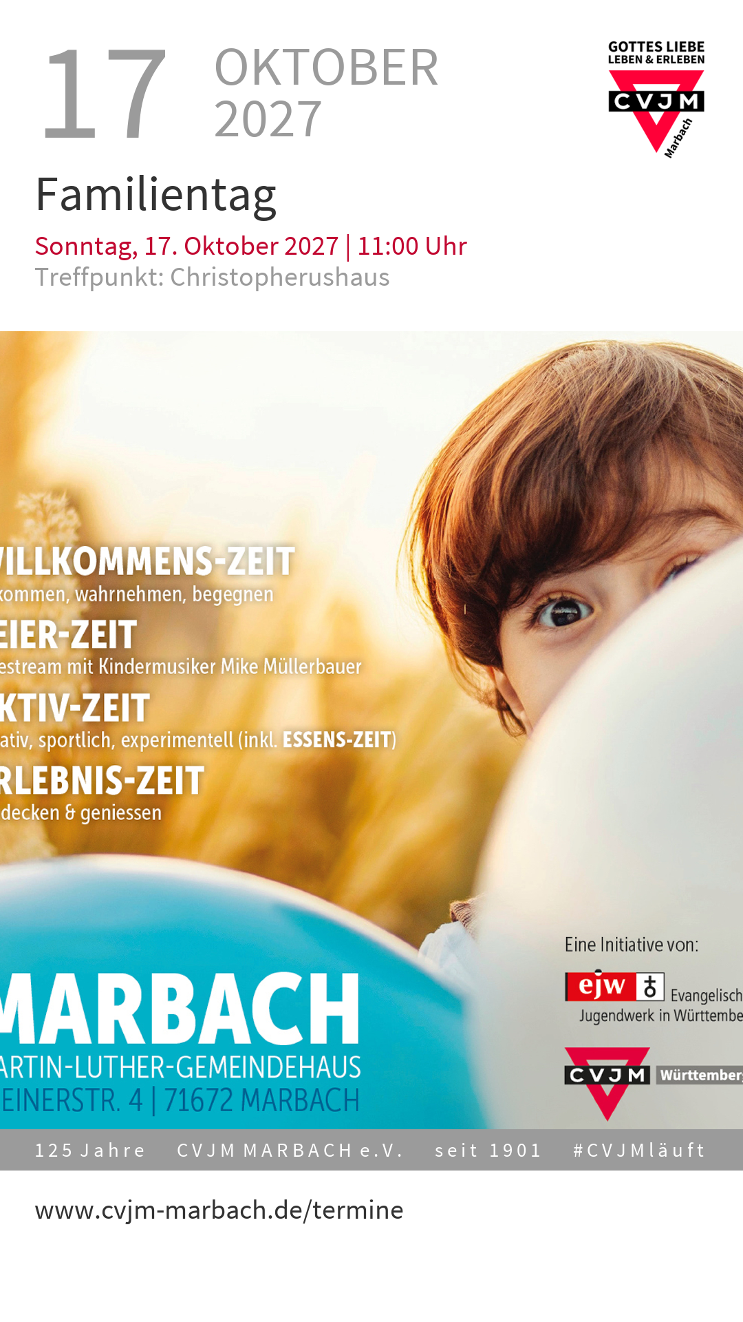 CVJM und ev. Kirchengemeinde veranstalten am Sonntag, den 15.10.2023 einen gemeinsamen Familientag. 10/2023