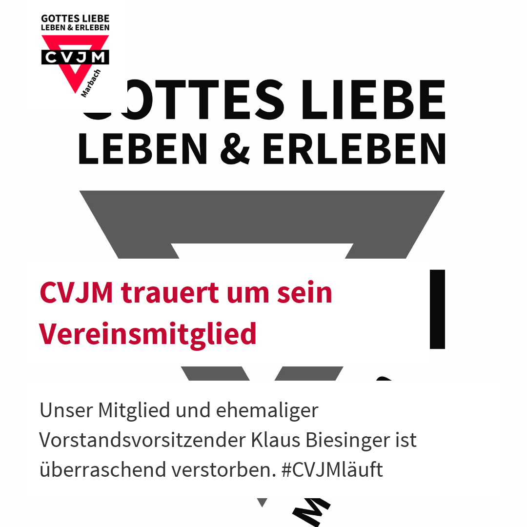 Der CVJM trauert um seinen früheren Vereinsvorstand Klaus Biesinger, der am 03. August 2024 überraschend verstorben ist. Unter seiner Führung (1992-1999) hat er den CVJM in der heutigen Struktur geprägt. Er kümmerte sich intensiv um den An- und Umbau der Vereinshütte und führte die passive Mitgliedschaft ein. Der erste Marbacher CVJM Flohmarkt fiel in seine Amtszeit. Viele weitere Arbeitseinsätze wie die damalige Altpapiersammlung, Altkleidersammlung, den Flohmarkt und als Organisator des jährlichen Christbaumverkaufs hat er bis zuletzt tatkräftig unterstützt. Die CVJMler denken an ihn als engagiertes Mitglied, Freund und überzeugten Christen und beten gemeinschaftlich um Beistand und Trost für seine Familie und Wegbegleiter.