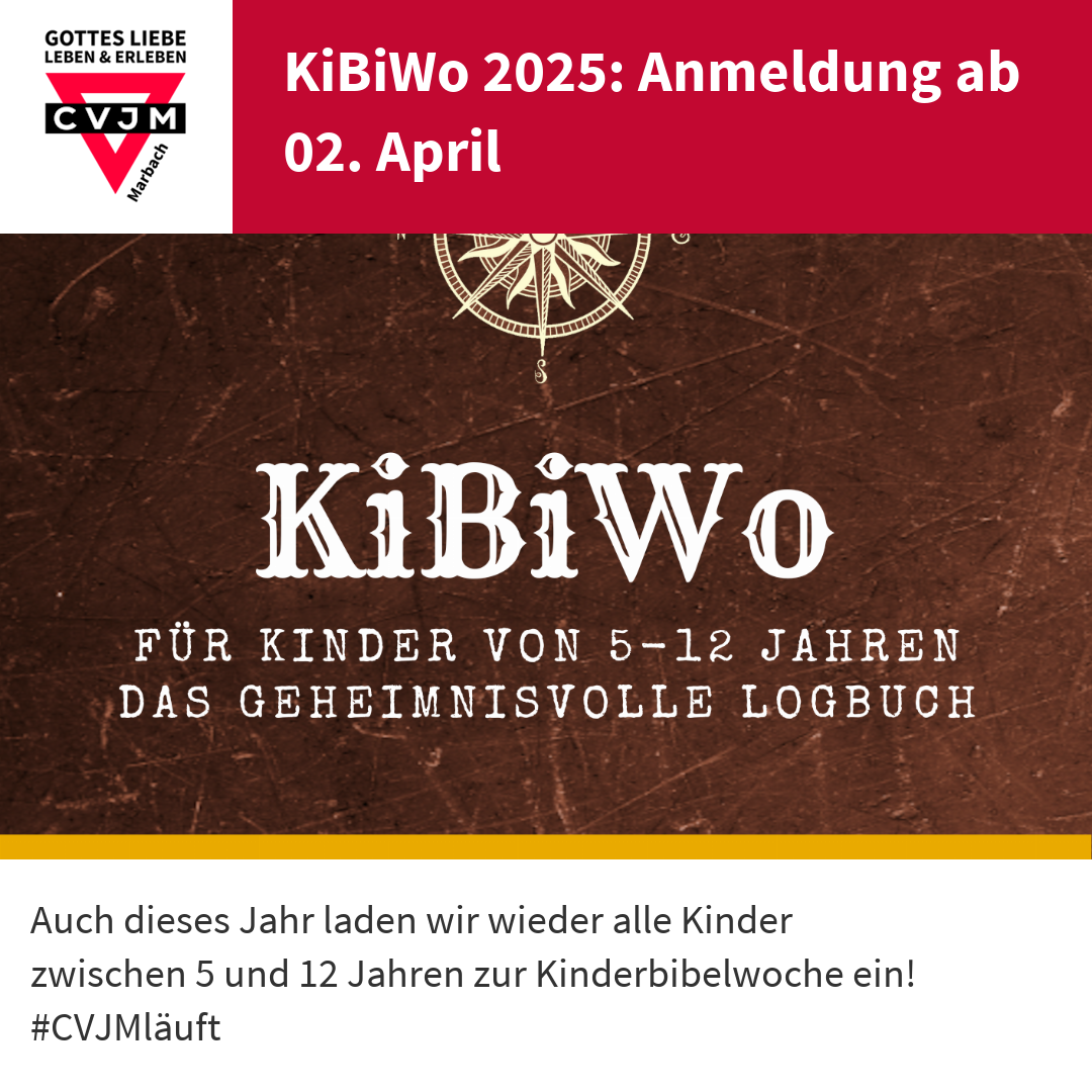 Die KiBiWo findet vom Mittwoch, 23. bis Samstag, 26. April von 14:30 Uhr bis 17:00 Uhr (Anmeldung ab 14:15 Uhr) im Martin-Luther-Haus statt. Vor Ort oder vorab online (bevorzugt) ist einmalig eine Anmeldung auszufüllen:
