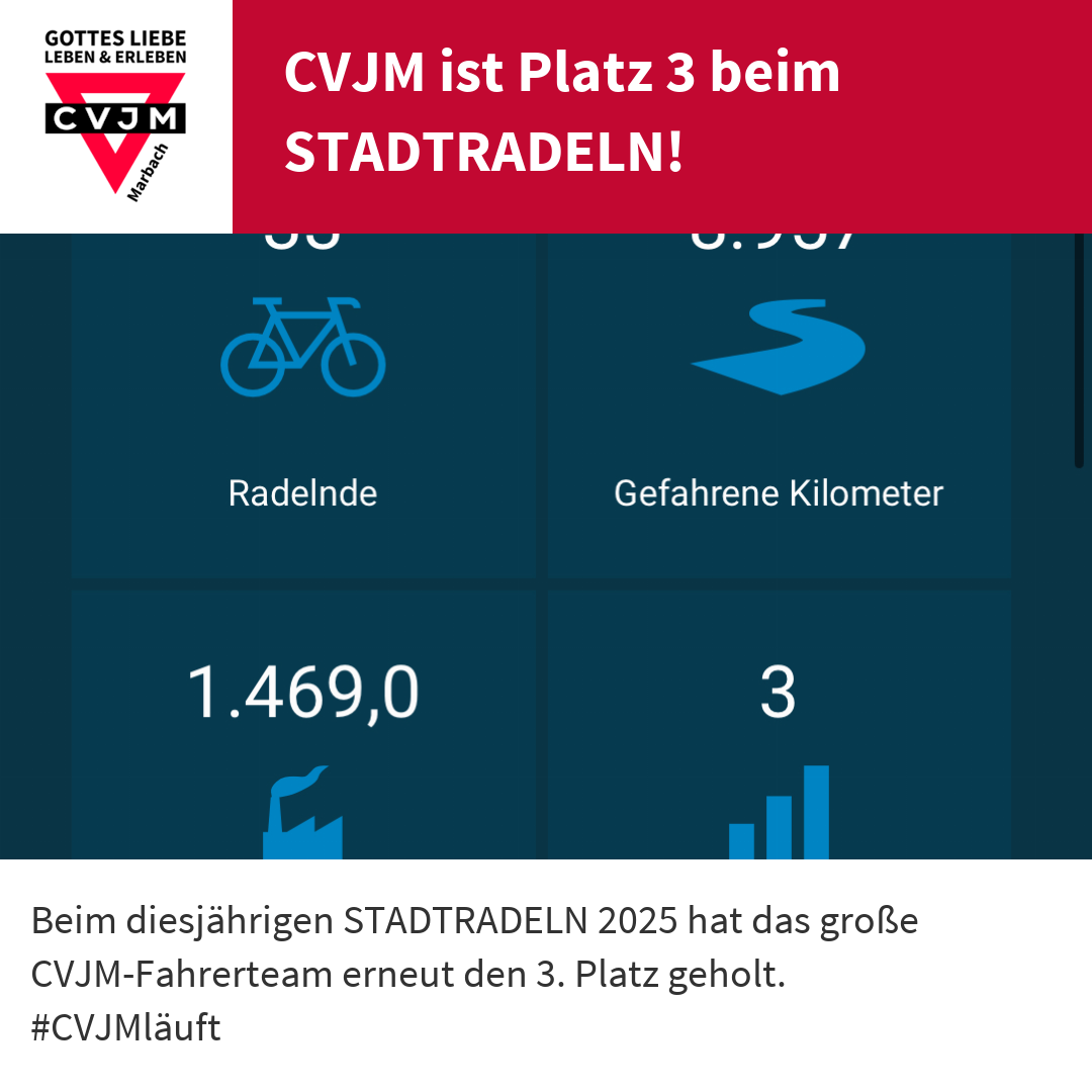 Auch in diesem Jahr ist der CVJM Marbach e.V. wieder als großes Team bei der Aktion STADTRADELN vom 01. bis 21. Juli 2025 angetreten. In diese Zeit fielen auch zwei gemeinsamen Ausfahrten, darunter eine mit Kindern im Abenteuerland und eine familienfreundliche Radtour beim Erlebnistag.